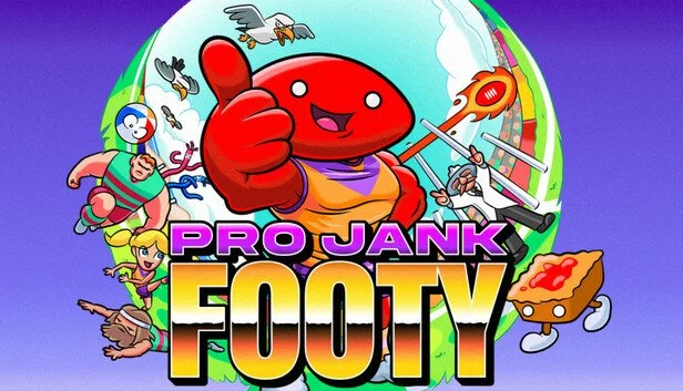 About: Pro Jank Footy is an over-the-top arcade comedy-sports game. Score goals to unleash game-changing power-ups, build a deck of absurd abilities, and tackle a season where no two matches are ever the same—solo or with your mates.